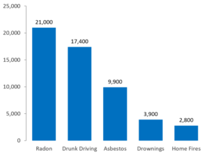 Figure 3: Radon and asbestos are estimated to cause tens of thousands of deaths in the U.S. each year